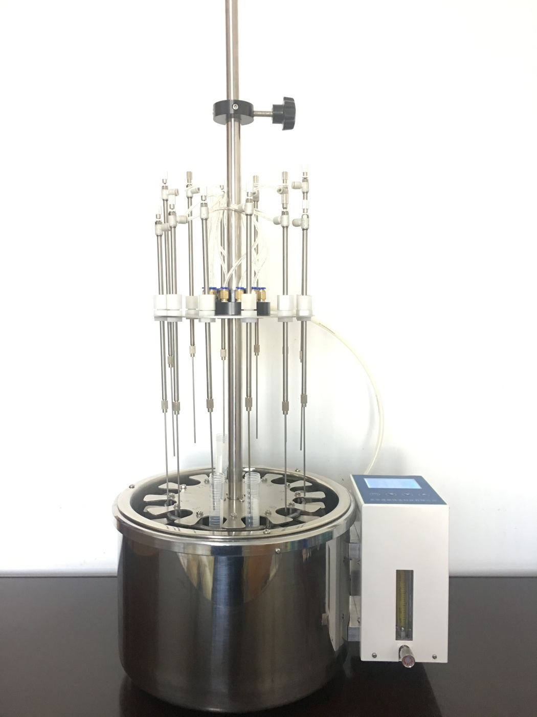 1.温度范围:室温~99℃(66*45mm液晶显示)2.控温精度 ±0.5℃3.试管尺寸:10~29mm4.气体流量:0~15L/Min,内置氮气流量阀5.气体消耗量:330ml/min/样品 (可调节)6.加热方式:恒温水浴7.内胆尺寸:φ26x15cm8.仪器尺寸:390×300×850mm应用领域